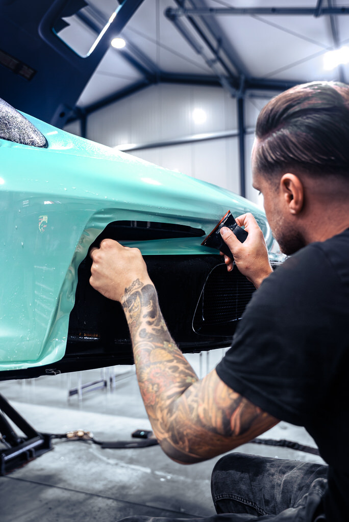 Colored PPF verfügt zudem über eine selbstheilende, nur leicht hydrophobe Beschichtung, welche auch eine Überlappung der Folienkanten ermöglicht, sodass „Folie-auf-Folie“-Verklebungen ohne Probleme möglich sind.